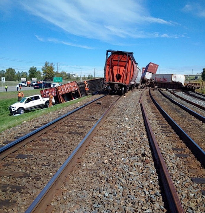 Despite believing that train 113 had already departed, the crew members on train 303 contacted train 113 to request its location. When the Calgary Terminal trainmaster overheard and responded, stating that train 113 was still stationary at the crew change location, train 303′s crew immediately applied the train brakes and, shortly after, the emergency brakes, when the tail end of train 113 came into view.