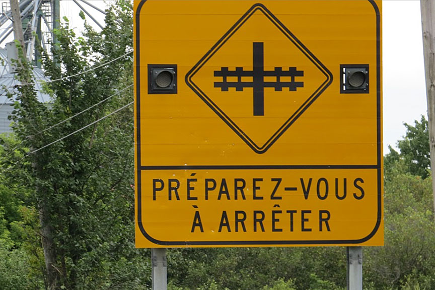 The route between the work site and Charny, Quebec, includes about 100 public grade crossings equipped with warning devices. The foreman in charge determines which crossings require manual protection by a flag-person based on a brief assessment of local traffic and visibility conditions. Although the conditions and particularities of each crossing are not necessarily known or taken into account as part of this assessment, this approach is sufficient for most situations. If advance warning signs with flashing lights are not activated when a grade crossing is occupied, the defence provided by the advance warning sign is negated, which can increase the risk of an accident.
