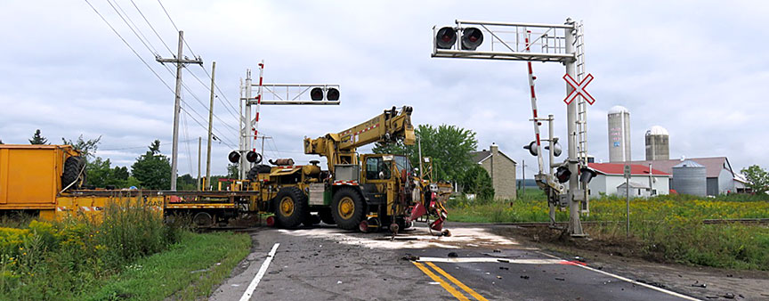 The track and the crossing sustained minor damage. Two flashing lights in the northeast quadrant of the warning system were shorn off.