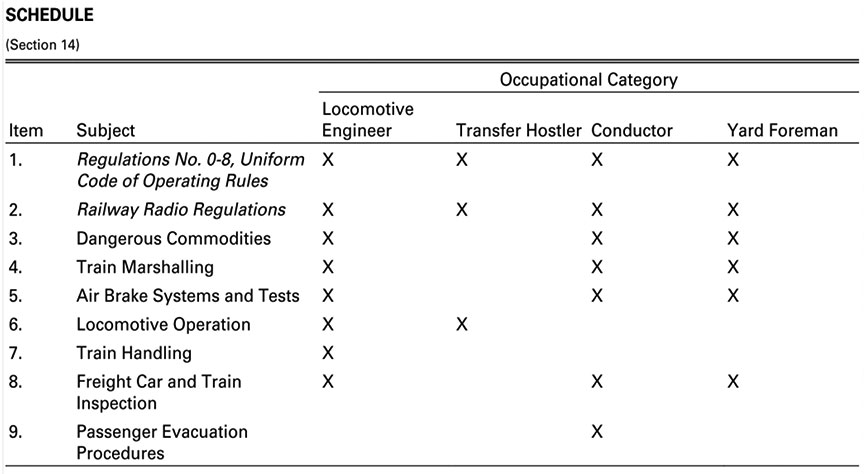 - The regulations require railways to file with TC a description of all employee training programs and subsequent changes related to each occupational category. Railways are also required to submit an update report to TC on their employee training programs each year. Although TC is provided with the information, the adequacy of the training program for each respective railway is not assessed. Consequently, once railway companies have satisfied the training, consultation, and reporting requirements of the regulations, TC provides no further oversight with regard to the training of railway operating employees.