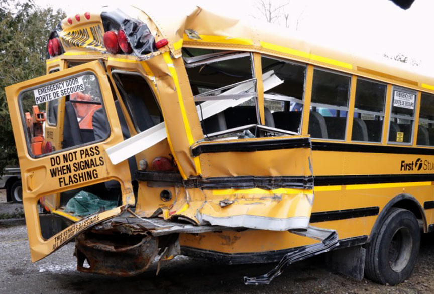 On 22 October 2014, at 0806 Eastern Daylight Time, eastbound GO Transit train No. 160 was proceeding at about 20 mph (32.2 km/h) when it struck a southbound school bus operated by Switzer-Carty Bus Lines. The bus had stopped just foul of the north track at the Erindale Station Road public railway crossing, located at Mile 17.35 of the CP Galt Subdivision in Mississauga, Ontario. The bus sustained minor damage. Neither the driver nor the 6 school-age passengers were injured.