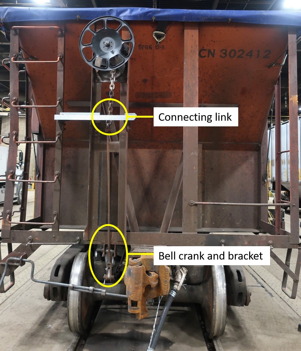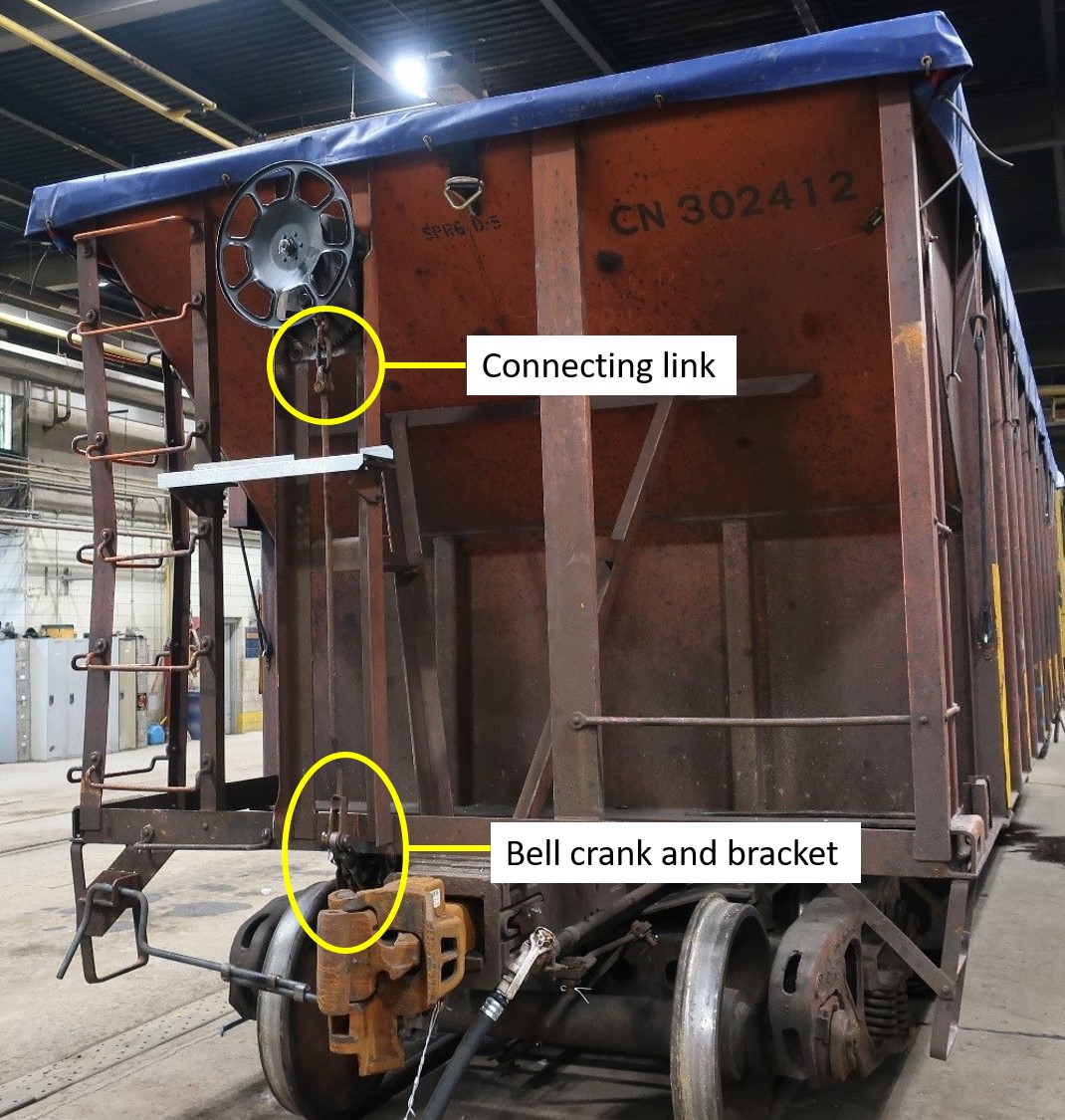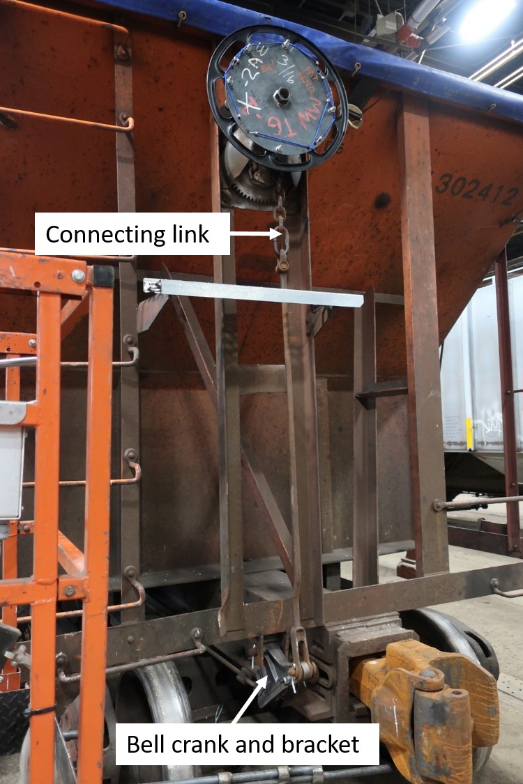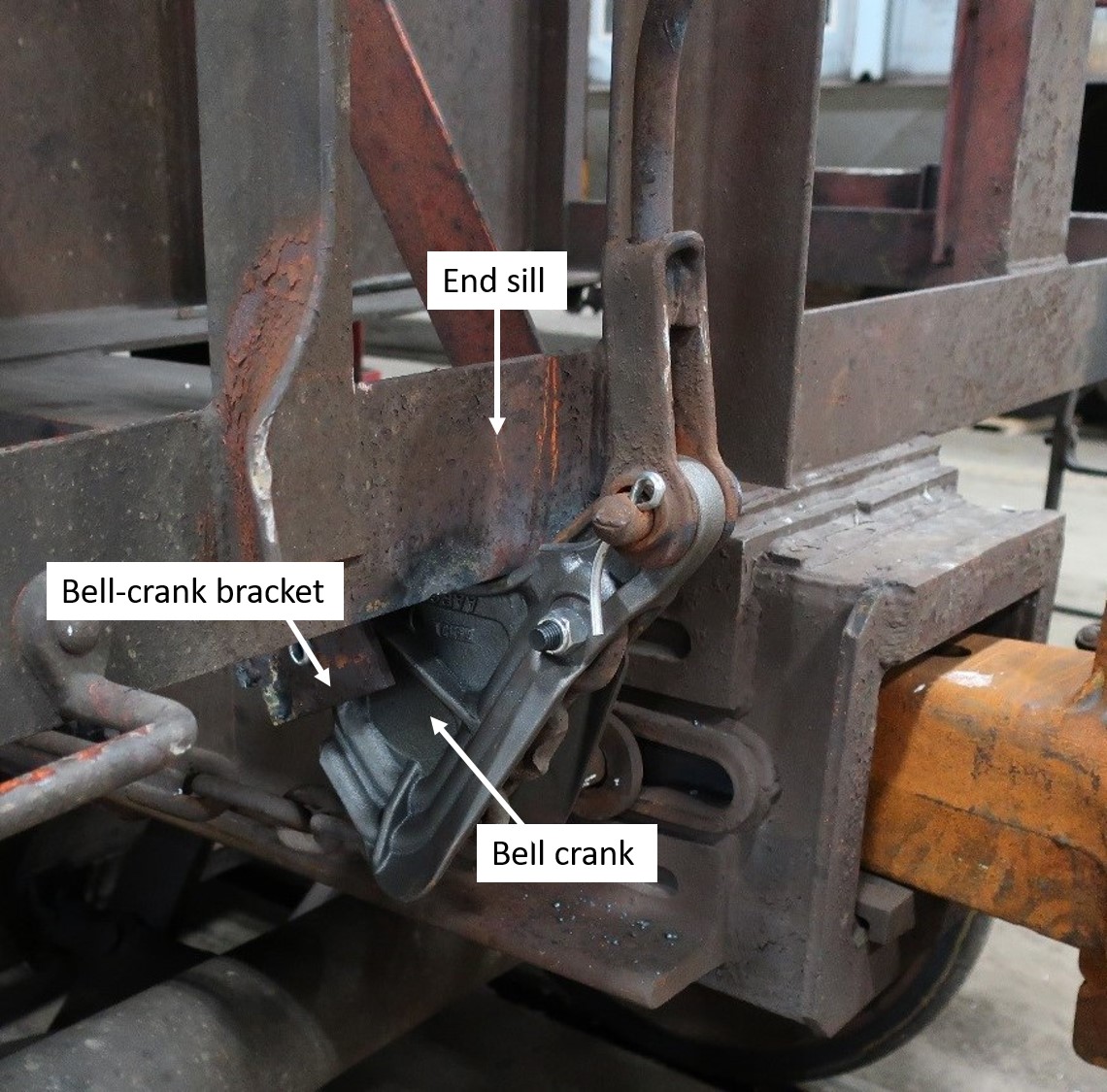 The 2 cars involved in the collision (PLCS 21492 and CN 302412) were photo-documented and examined more closely, which included documenting the broken bell-crank bracket (Figure 6).
