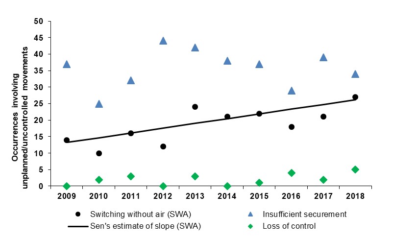 The underlying causes of uncontrolled movements that occur while switching without air can vary greatly. Consequently, developing a comprehensive strategy to deal effectively with all of the underlying factors and associated risks in order to reduce the number of such uncontrolled movements is proving to be difficult. Therefore, the Board recommends that