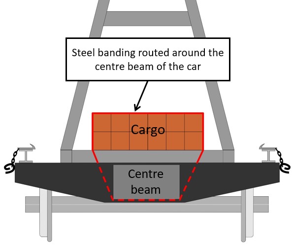 Before 2018, A-frame flat cars were loaded and secured at Weston Shops, in Winnipeg, Manitoba, in accordance with a long-standing, but undocumented, CP in-house practice. As part of this practice, material loaded beneath the A-frame was secured using steel banding that was routed through the car deck and around the centre beam.