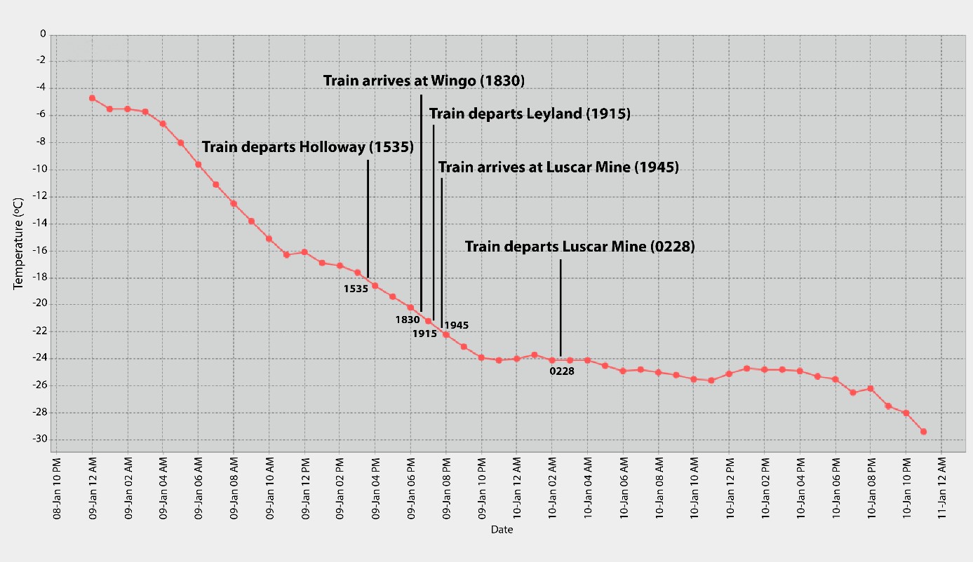 - When the temperature is between −22 °C and −25 °C, loaded coal train operations are conducted only during the day.