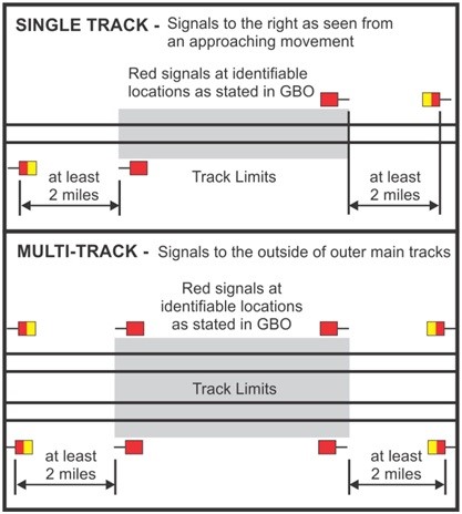 - A movement in possession of the Form Y must not proceed beyond the red signal located at the identifiable location stated in the GBO, enter the track limits stated in the GBO, or make a reverse movement within such track limits until instructions have been received from the foreman named in the GBO. When a specific track is to be used, instructions from the foreman must specify the track upon which the instructions apply.