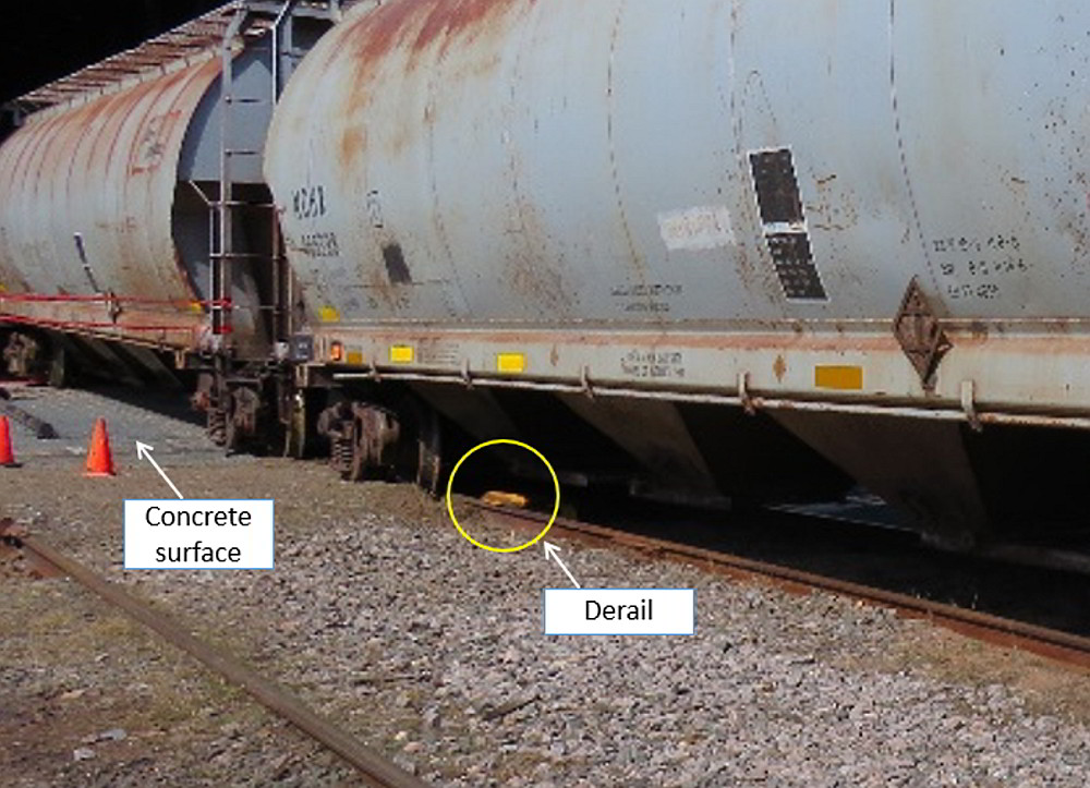 Figure 3. Concrete surface and position of derail (Source: TSB)