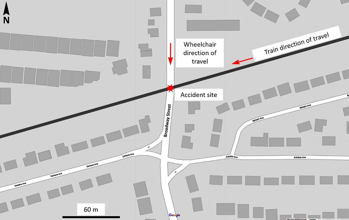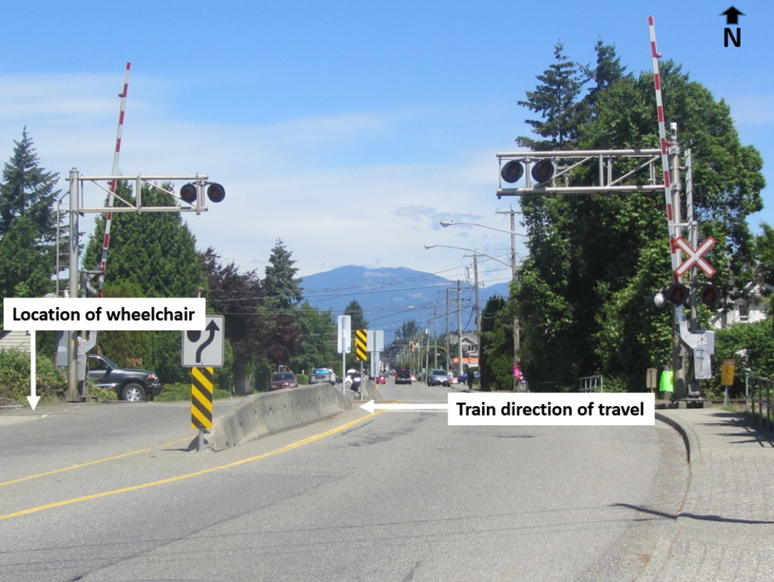 In the 10 years before the occurrence, there had been 1 other TSB-reportable occurrence at this crossing involving a pedestrian fatality, in 2007. Footnote 12 The pedestrian involved in that occurrence did not use an assistive device.