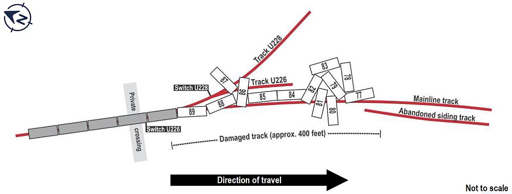 The rail was tested for internal flaws on 25 January 2019, and the latest track geometry test was conducted on 12 November 2018. No urgent or near-urgent geometry defects were identified near the site of the derailment.