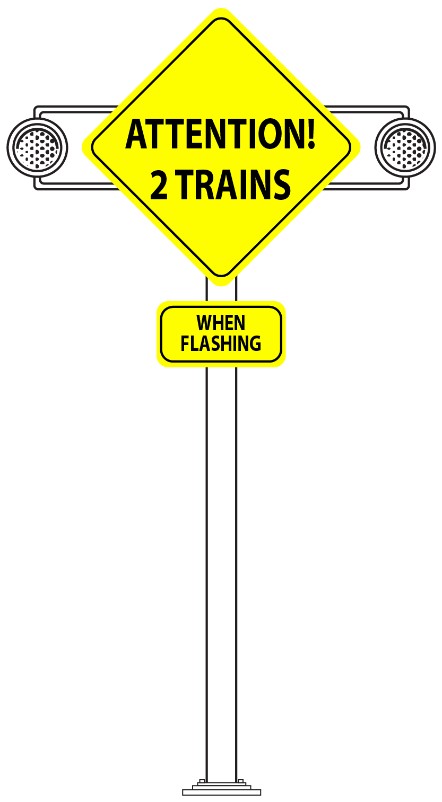 - dynamic LED signs displaying “Danger – Multiple Trains Expected” that are activated when a second train enters the crossing circuit; and