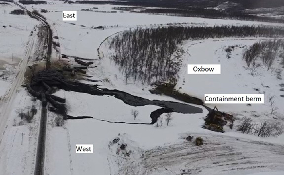 A soil berm was constructed to prevent the released product from contaminating a nearby oxbow.Footnote 8