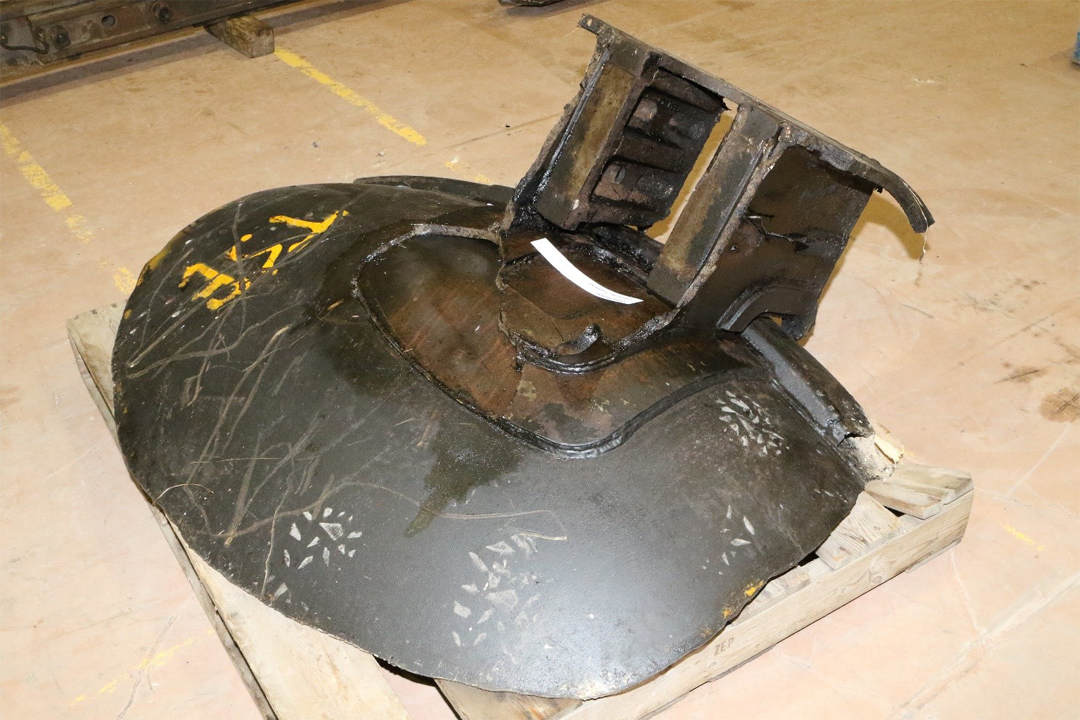 All head breaches were associated with significant deformation of the head, which suggests that they were subjected to elevated collision forces. Despite elevated collision forces, the presence of full head shields on all the derailed tank cars likely minimized the number of tank heads that breached.