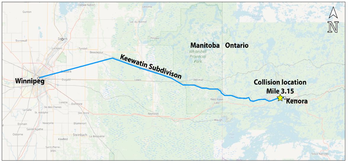 On 08 August 2019, a Canadian Pacific Railway (CP) operating crew was ordered for 0240Footnote 1 in Winnipeg, Manitoba, for CP freight train 320-173, to operate on CP’s Keewatin Subdivision from Winnipeg (Mile 125.7) to Kenora, Ontario (Mile 0.0) (Figure 1). The operating crew consisted of a locomotive engineer and a conductor who were qualified for their positions, met fitness and rest requirements, and were familiar with the territory.