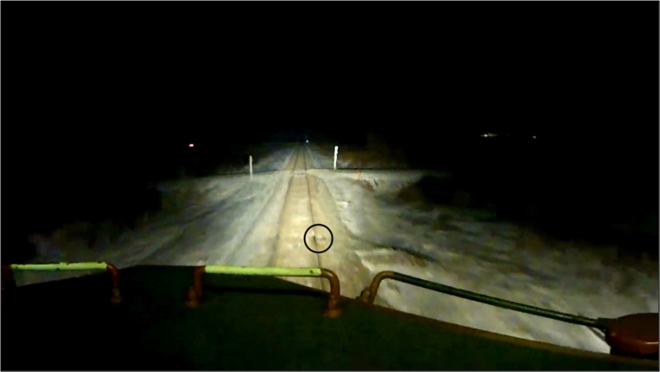 It was determined that the rail had likely broken under the passage of a previous CP trainFootnote 7 prior to the arrival of the occurrence train. As the locomotive wheels went over the gap, there was a noticeable vibration of the recorded image.