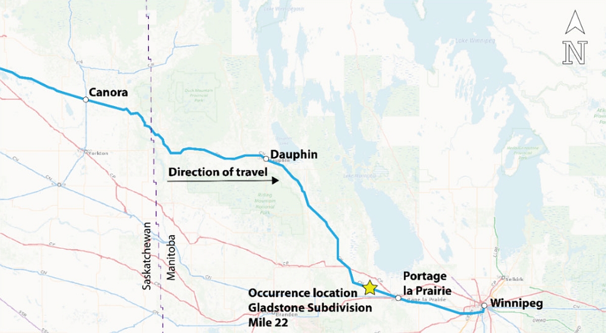 The CN Gladstone Subdivision is a secondary main trackFootnote 4 that extends from Kearns, Manitoba (Mile 0.0), to Dauphin, Manitoba (Mile 121.7). Train movements are controlled by the occupancy control system (OCS) as authorized by the Canadian Rail Operating Rules (CROR), and supervised by a CN rail traffic controller located in Edmonton, Alberta. OCS territory is not equipped with wayside signal systems or associated track circuits to govern movements. Such wayside signal systems are known to aid in the detection of broken rails before the arrival of a train.