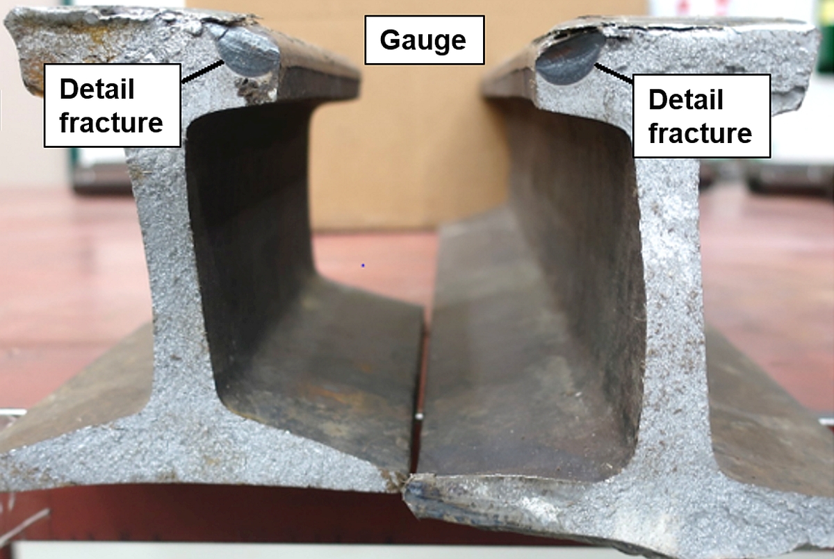 In each of the 3 failures (rail breaks B and C, as well as broken joint D), brittle fractures had developed from the extremities of the pre-existing fractures and propagated through the remainder of the cross-sections. The pre-existing rail head DFs and joint bar fatigue cracks acted as stress risers and facilitated the initiation of brittle through fractures in the south rail and joint bars, respectively.