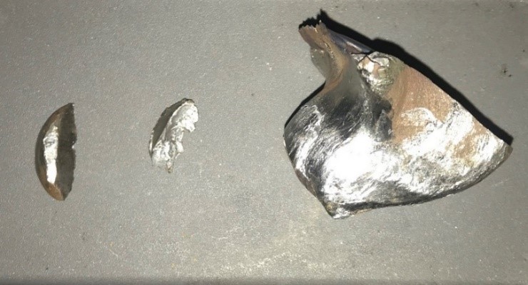 The examined fragment had a significant amount of plastic deformation. Due to the small size of the fragment and the extent of the damage it had sustained, the mode of failure of the cross key could not be ascertained.