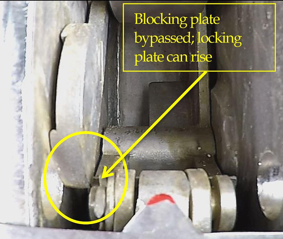 Figure 3. Image of blocking lever functioning as designed (not bypassed).