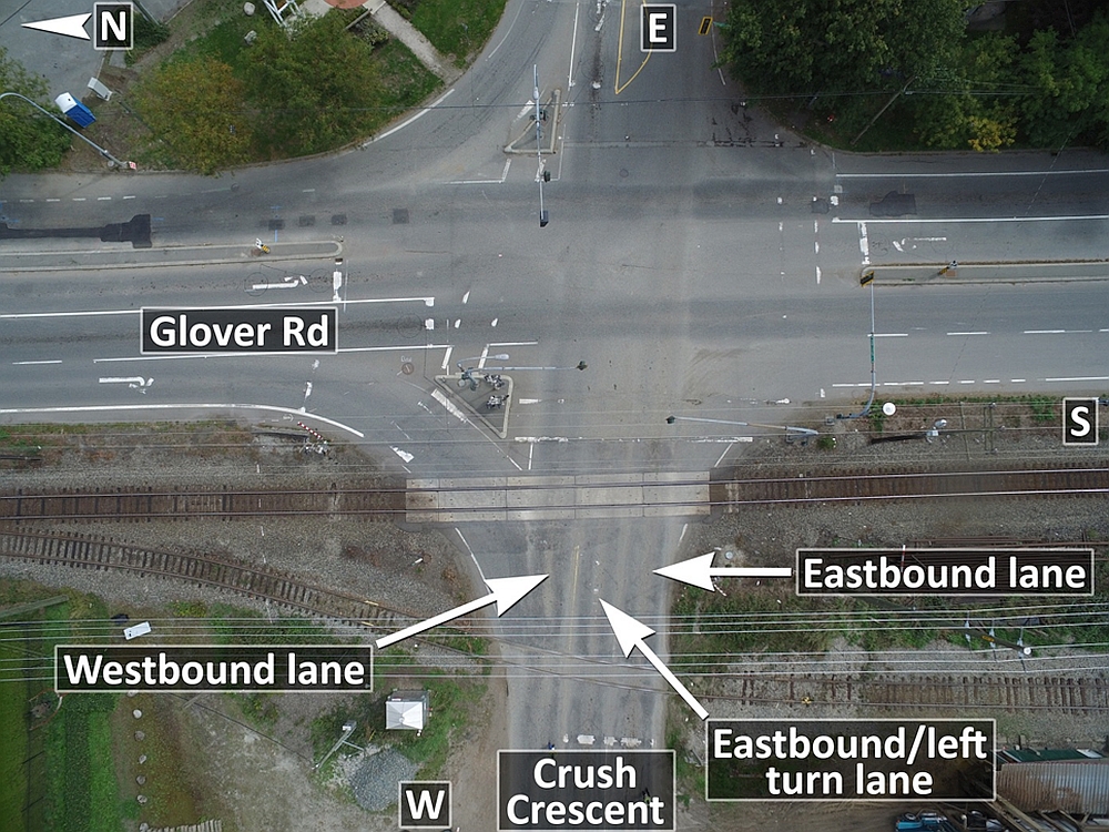 Jurisdictional responsibility for roadway markings at Crush Crescent – Glover Road crossing in Langley, BC