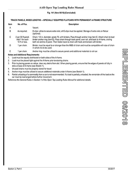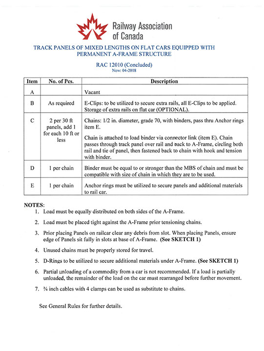 Annex A – RAC 12010 – Track Panels of Mixed Lengths on Flat Cars Equipped with Permanent A-Frame Structure