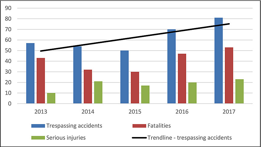 Figure 4. Trespassing accidents, 2013-2017