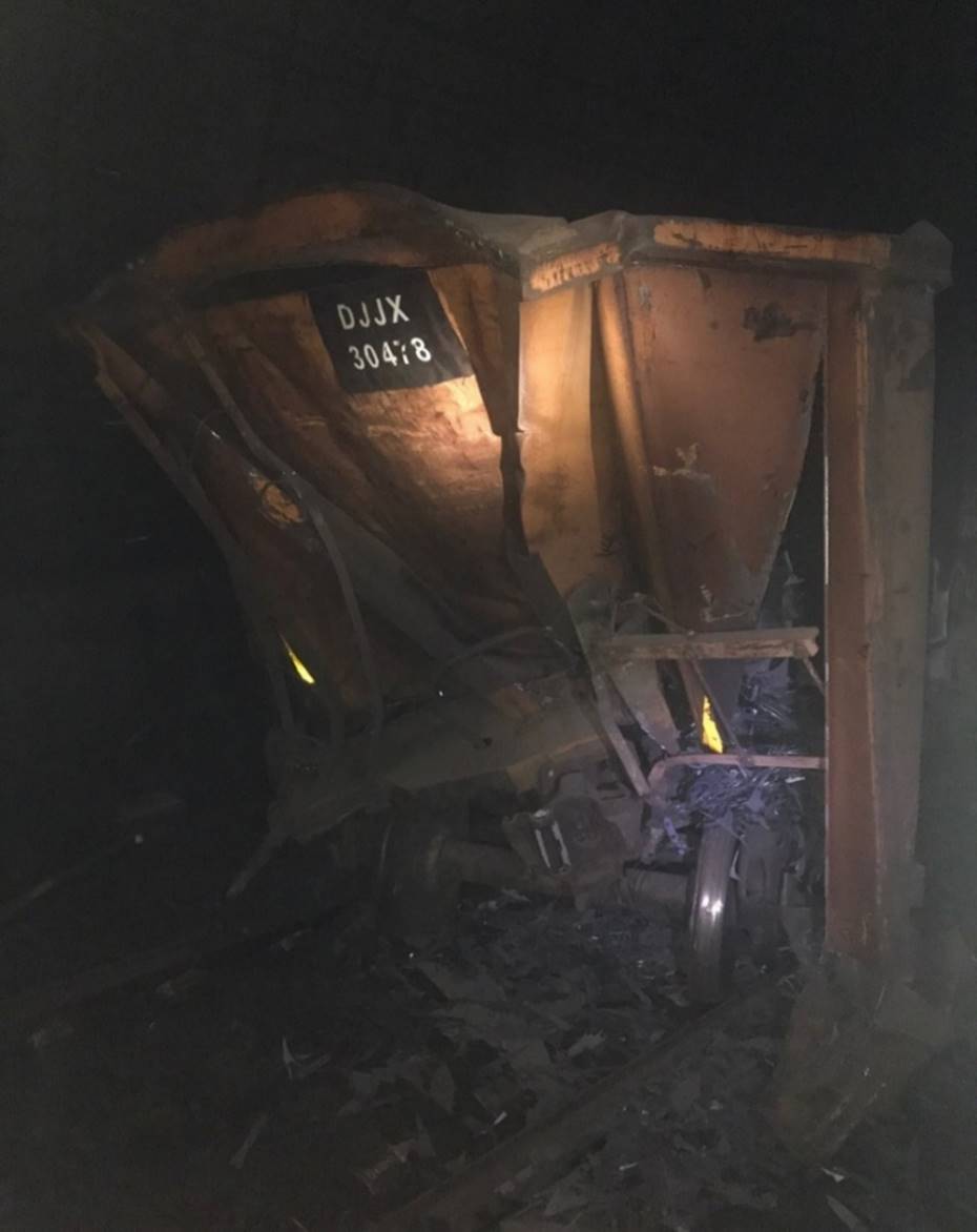 The adjacent tunnel reinforcement walls and the trailing end of the preceding 52nd car showed no visible signs of impact. There were no obvious track defects.