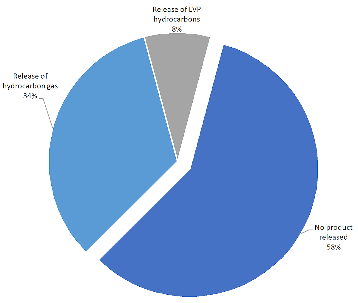 | No release of product | Release of hydrocarbon gas | Release of HVP hydrocarbons | Release of LVP hydrocarbons1 | Release of other product | ||||||