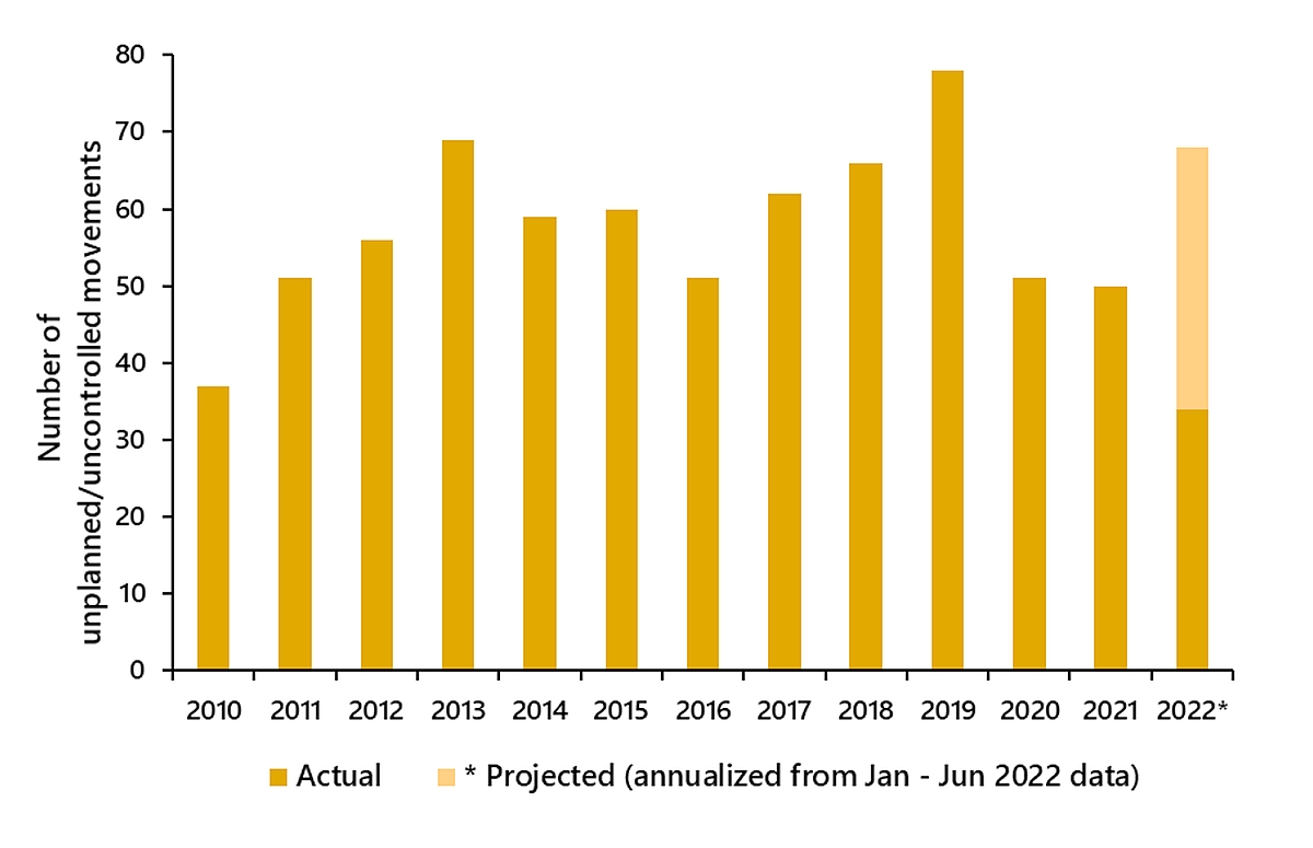 | Type of uncontrolled movement | 2010 | 2011 | 2012 | 2013 | 2014 | 2015 | 2016 | 2017 | 2018 | 2019 | 2020 | 2021 | 2022* | Total |