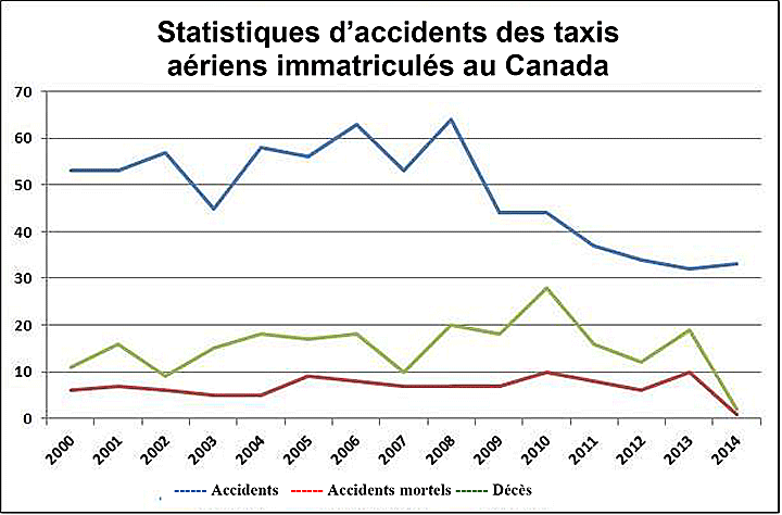 Dans l'industrie canadienne de l'aviation, les taxis aériens, qui relèvent de la sous-partie 703 du Règlement de l'aviation canadien (RAC), ont fait 229 morts au cours des 15 dernières années. Cela représente 62 % de toutes les pertes de vie dans l'aviation commerciale. Dans ses rapports d'enquête, le BST a souligné à maintes reprises les enjeux de sécurité cruciaux qui contribuent aux accidents dans ce secteur. Mais malgré cela, de tous les secteurs de l'aviation commerciale, celui du taxi aérien est toujours celui où il survient le plus d'accidents et de décès. Le BST souhaite cerner et faire connaître les problèmes de sécurité systémiques sous-jacents afin que l'on puisse prendre des mesures pour réduire les risques qui persistent dans les activités de taxi aérien partout au Canada. Au terme de cette enquête sur les questions de sécurité, le Bureau pourra faire des recommandations pour corriger les lacunes systémiques qu'il aura relevées.