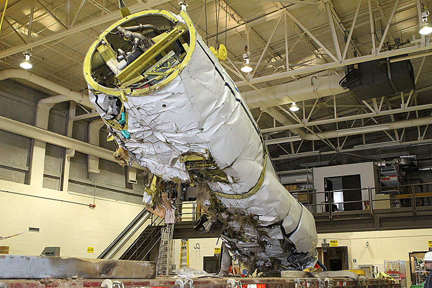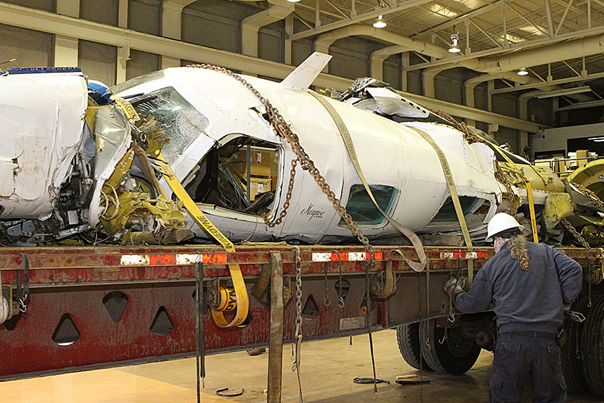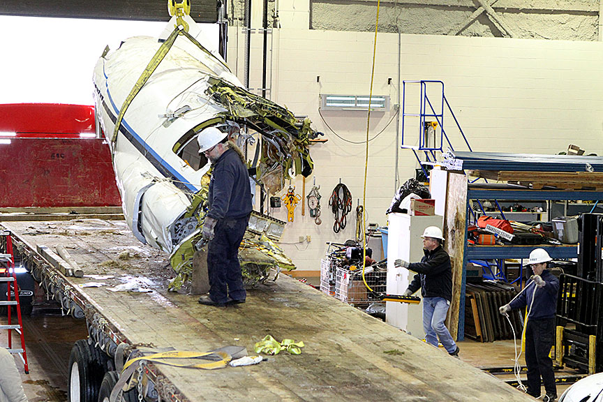 - L'étape d'examen et d'analyse : le BST examine toute la documentation liée au dossier, effectue des tests en laboratoire sur des composantes de l'épave, établit la chronologie des événements et identifie toute lacune en matière de sécurité. Lorsque le BST soupçonne ou constate des lacunes en matière de sécurité, il en informe sans tarder les organismes concernés sans attendre la parution du rapport final.