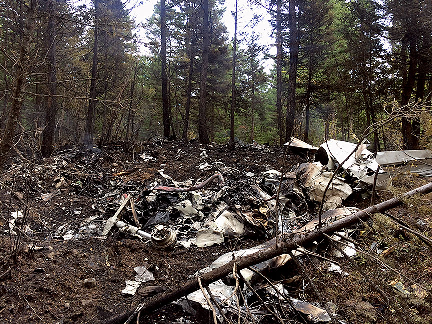 Le , un Cessna Citation 500 privé (immatriculé C-GTNG, numéro de série 500-0169) a quitté l'aéroport de Kelowna (CYLW) (Colombie-Britannique) pour effectuer un vol de nuit selon les règles de vol aux instruments à destination de l'aéroport Calgary/Springbank (CYBW) (Alberta). Le pilote et 3 passagers se trouvaient à bord. Peu après le départ, vers 21 h 35, heure avancée du Pacifique, l'aéronef a viré vers la droite alors qu'il franchissait 8600 pieds en montée au-dessus du niveau de la mer, puis a amorcé un virage serré en descente jusqu'à ce qu'il percute le relief. Tous les occupants ont été mortellement blessés. Les forces d'impact et un incendie après impact ont détruit l'aéronef. Il n'y a eu aucun appel d'urgence, et aucun signal de radiobalise de repérage d'urgence n'a été détecté.