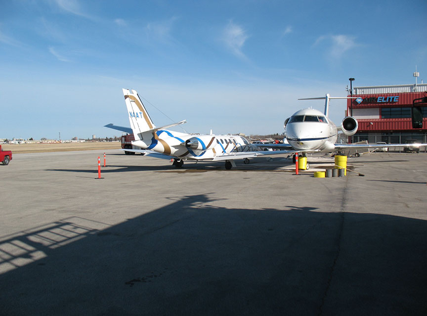 L'aile droite du C550 a subi des dommages importants, entraînant une fuite de carburant sur le tarmac. L'aile droite du Challenger 605 a aussi été endommagée par le train avant du C550. Les services d'urgence locaux ont été avisés de la collision et de la fuite de carburant. Les services de sauvetage et de lutte contre les incendies de l'aéroport sont intervenus, et la fuite de carburant a été colmatée.