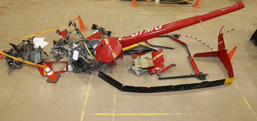 , vers 19 h 45, heure normale de l’Est, l’hélicoptère Robinson R44 Raven I (immatriculation C-GYMG, numéro de série 2081), en exploitation privée, a décollé de Saint-Georges de Beauce (Québec) avec à son bord le pilote et 2 passagères pour un vol de nuit selon les règles de vol à vue à destination de Saint-Alexis-de-Montcalm (Québec). À 20 h 32, le Centre canadien de contrôle des missions a capté un signal de détresse émis par la radiobalise de repérage d’urgence de l’hélicoptère. Vers 21 h 35, l’hélicoptère a été retrouvé dans un champ à Saint-Joachim-de-Courval (Québec), près de Drummondville (Québec). L’hélicoptère a été détruit par les forces d’impact et par un incendie qui s’est déclaré après l’impact. Tous les occupants ont subi des blessures mortelles.