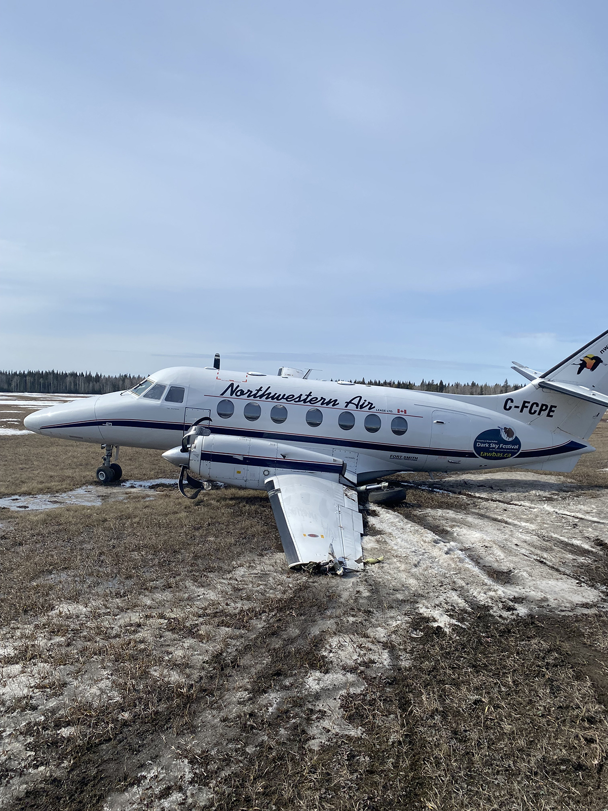 Un aéronef British Aerospace Jetstream 31 de Northwestern Air Lease Ltd. effectuait un vol d’entraînement à l’aéroport de Fort Smith (CYSM) (Territoires du Nord-Ouest) avec 2 membres d’équipage de conduite à bord. Lors du toucher des roues, le train d’atterrissage principal gauche s’est affaissé et l’aéronef a quitté le côté gauche de la piste. L’aéronef a été lourdement endommagé; personne n’a été blessé. Le BST s’est rendu sur les lieux pour obtenir plus d’informations.