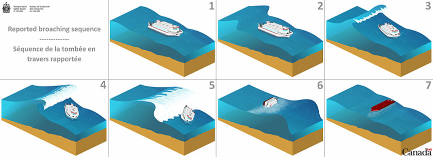 Recommandation M17-01 du BST : Le ministère des Transports s'assure que les exploitants de navires à passagers commerciaux sur la côte ouest de l'île de Vancouver déterminent quelles zones et quelles conditions sont propices à la formation de vagues dangereuses et adoptent des stratégies pratiques d'atténuation des risques pour réduire la probabilité qu'un navire à passagers se retrouve dans de telles conditions.