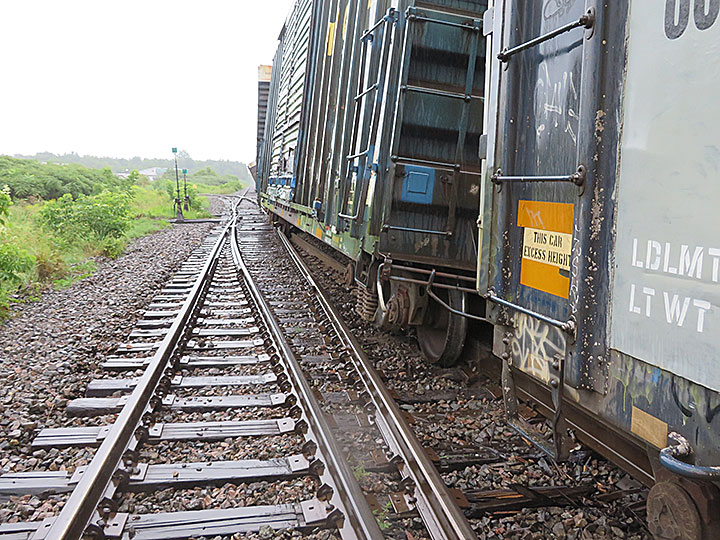 Le , vers 22 h 30, heure avancée de l'Est, en quittant le triage Farnham, à Farnham (Québec), 15 wagons du train de marchandises 2-10 du chemin de fer Central Maine & Québec ont déraillé près de la liaison entre la voie d'évitement et la voie principale de la subdivision d'Adirondack. La liaison, un tronçon de la voie d'évitement d'une longueur d'environ 800 pieds, ainsi que les wagons déraillés ont été endommagés. Il n'y a eu aucun blessé.