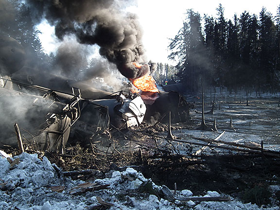 Le Bureau de la sécurité des transports du Canada envoie une équipe sur les lieux du déraillement et incendie d'un train de pétrole brut 80 km au sud de Timmins (Ontario)