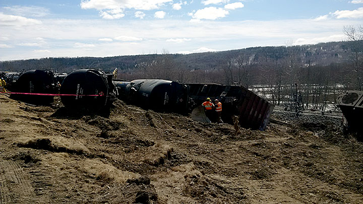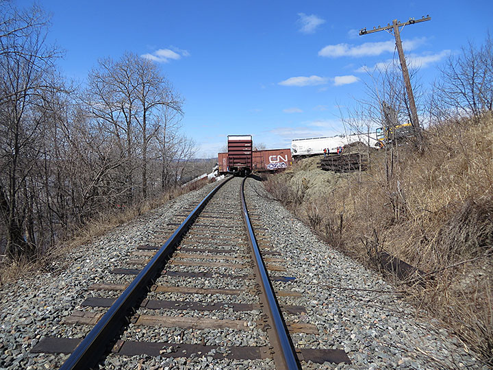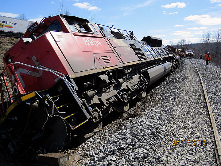 Le , vers 14 h 50, heure avancée de l’Atlantique, 35 wagons et 1 locomotive à traction répartie du train de marchandises M30511-17 des Chemins de fer nationaux du Canada, circulant vers l’ouest à 46 m/h, ont déraillé au point milliaire 212,8 dans la subdivision de Napadogan, près de Saint-Basile (Nouveau-Brunswick). Le déraillement a détruit environ 900 pieds de voie principale. Vingt des wagons déraillés étaient des wagons-citernes de résidus de pétrole brut (UN 1267, classe 3, leur dernier chargement). Il n’y a pas eu de fuite et personne n’a été blessé.