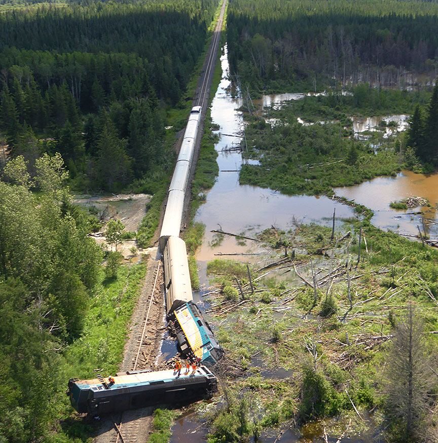 Le , un train de VIA Rail circulant en direction nord a déraillé au point milliaire 23,4 de la subdivision Turnberry près de Hudson Bay, en Saskatchewan, en raison d'un emportement par les eaux. L'inspection a révélé que 2 locomotives et 2 wagons ont déraillé dans diverses positions. Les rapports initiaux indiquent que deux mécaniciens de locomotive ont subi des blessures mineures. Aucune marchandise dangereuse n’était en cause.