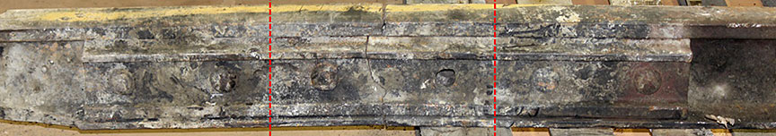 Image des surfaces de rupture du rail gauche de prolongement de pointe
