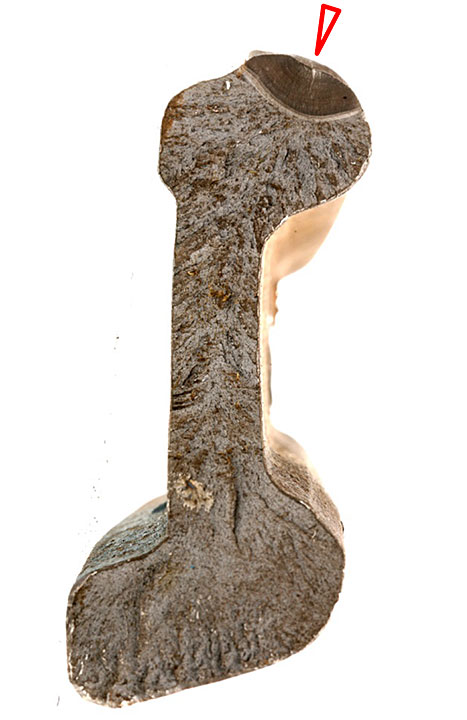 Figure 7. Soudure de réparation sur le cœur à quelque 3,5 pieds de l'extrémité de la pointe