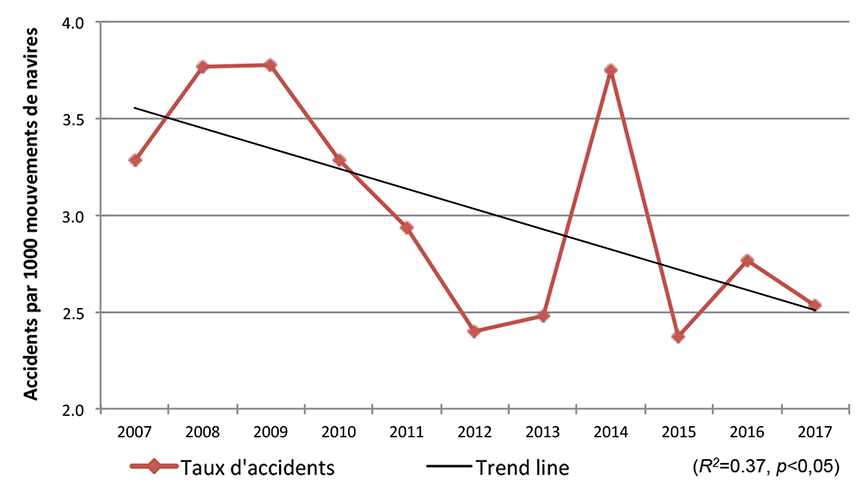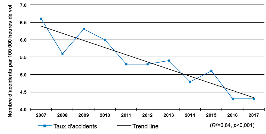 Les 1614 accidents signalés en 2017 représentent une hausse de 12 % par rapport aux 1437 cas signalés en 2016. Cela dit, le total des accidents signalés en 2017 est de 5 % inférieur à la moyenne décennale (1694). En 2017, on compte 120 décès, soit 2 % de plus qu'en 2016 (118), mais 19 % de moins que la moyenne décennale (149).