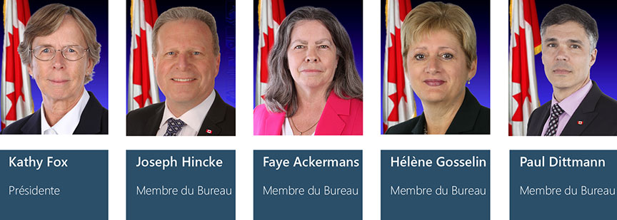 Kathleen Fox, présidente, Joseph Hincke, Faye Ackermans, Hélène Gosselin, et Paul Dittmann