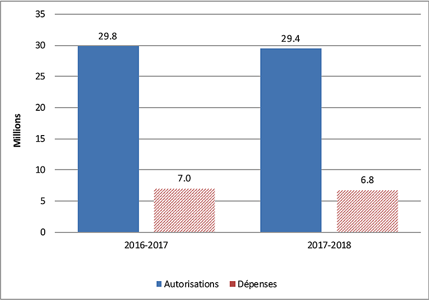 Les autorisations totales aux fins d'utilisation du BST sont diminuées de 381 000 $ entre les exercices 2017-2018 et 2016-2017. Cela est principalement dû à une baisse de 307 000 $ suite à une réduction dans le pourcentage des régimes d'avantages sociaux des employés (RASE), qui est un taux établi annuellement par le Secrétariat du Conseil du Trésor. Les autorisations du BST ont baissé davantage en raison d'une réduction budgétaire de 65 000 $ à l'échelle du gouvernement pour les services professionnels, la publicité et les déplacements. Cette réduction a été imposée l'année dernière également, mais n'a pas été retirée des autorisations du BST qu'au troisième trimestre. La différence restante de 9 000 $ s'attribue à une réduction légère des recettes disponibles générées cette année par rapport à l'année précédente.