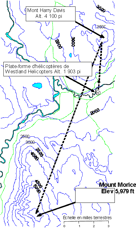 Afin de monter au-dessus de la couche de brouillard se trouvant dans la région de Houston, le pilote avait l'intention de se diriger au nord-est de Houston en suivant le relief du mont Harry Davis comme référence visuelle. Une fois au-dessus de la couche de brouillard, il avait l'intention de se rendre au mont Morice en suivant les crêtes de montagne (voir la figure 1).