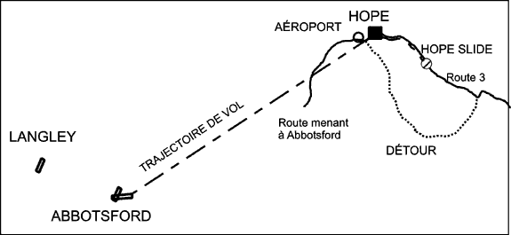 Le spécialiste leur a également lu un rapport météo de pilote (PIREP) transmis par le pilote d'un autre Cessna 172 qui avait décollé environ une heure et demie plus tôt pour suivre la même route proposée. Le pilote avait été incapable de s'engager dans la vallée du Hope Slide à cause de nuages bas, et il avait fait un détour vers le sud par le lac Ross, puis il avait repris sa route plus à l'est. Ce détour passe par les vallées du ruisseau Silverhope et de la rivière Skagit, ce qui permet à un aéronef de contourner le Hope Slide et de rejoindre la route 3 à 10 milles à l'est du Hope Slide à une altitude de 2 000 pieds.