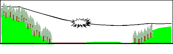 La ligne électrique était suspendue à des poteaux de chaque côté de la rivière. Les deux poteaux étaient entourés de grands arbres à feuillage persistant et d'arbres serrés à feuillage caduc, et la bande défrichée qu'on trouve normalement à proximité des lignes de transport d'électricité avait été envahie par la végétation.