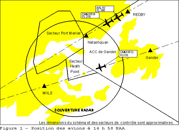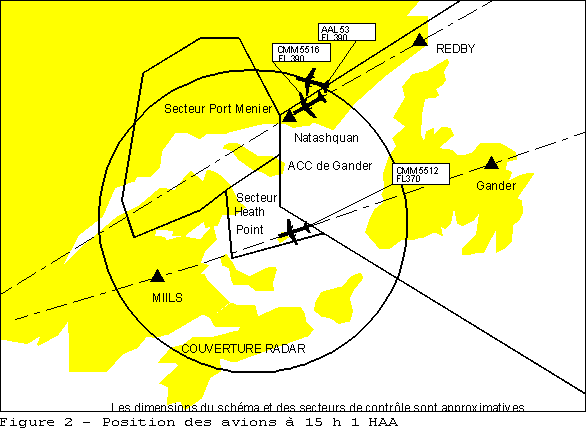 Au cours du présent incident, le secteur Heath Point de l'ACC de Moncton était occupé par un contrôleur stagiaire sous la supervision d'un instructeur. Le volume du trafic pendant l'incident a été qualifié de léger, la complexité étant normale. Tout l'équipement disponible utilisé par les contrôleurs fonctionnait correctement. L'affichage radar avait été configuré de façon à ne montrer que les étiquettes de données relatives aux cibles des appareils en transit dans le secteur Heath Point, ce qui était le cas d'Elite 5512; la route suivie par Elite 5516 et AAL 53 se trouvait à l'extérieur du secteur Heath Point.