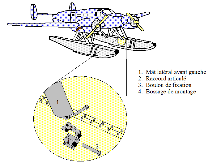 - ?À cause de l'aile basse et de la configuration du train d'atterrissage de l'hydravion, une défectuosité dans la zone où sont situés les raccords avant des flotteurs est plus difficile à déceler pendant l'entretien courant et l'exploitation.