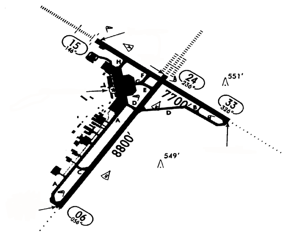 Dans le CAP, la carte pour effectuer une approche de non-précision sur la piste 06 à l'aide du faisceau arrière du LOC indique 1 700 pieds-mer comme altitude de passage du NDB Golf, lequel sert de repère d'approche finale (FAF). L'altitude minimale de descente (MDA) est fixée à 760 pieds-mer ou 298 pieds-sol. La zone de toucher des roues se trouve à une altitude de 462 pieds-mer. Les altitudes indiquées sur les cartes d'approche Jeppesen utilisées par les LACI sont les mêmes altitudes qui figurent sur les cartes d'approche du CAP.